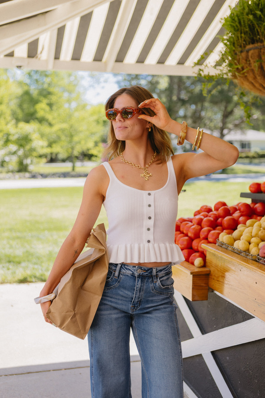 White ribbed knit tank top